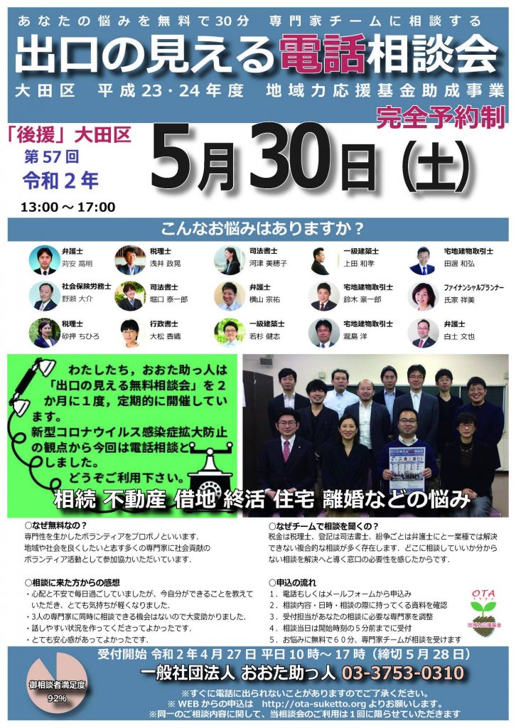 代表弁護士の白土が運営に関わっている「出口の見える無料相談会」(主催・一般社団法人おおた助っ人)の次回開催は5月30日(土)13時~です。